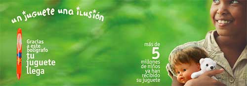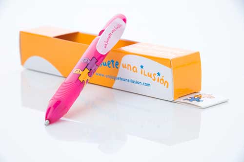 ¿Cómo podemos colaborar con esta causa? Es tan sencillo como comprar un bolígrafo. Pero no un bolígrafo cualquiera, sino el “Bolígrafo Solidario de la campaña» Un juguete, una ilusión”. El Bolígrafo lo podréis encontrar en los establecimientos colaboradores, al precio de 5 euros. Se trata de un bolígrafo de calidad, marca INOXCROM, de fabricación integramente española. También podemos donar el importe que queramos a través de PayPal en su página web.